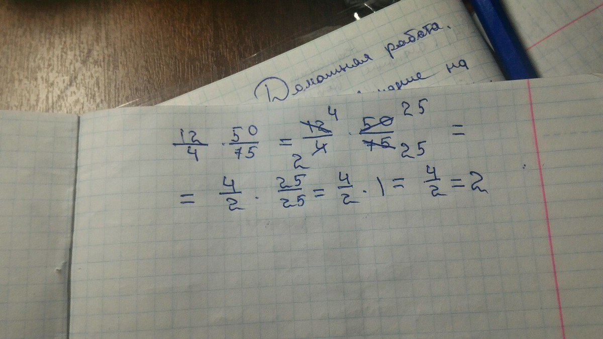 Надеюсь, все понятно. 50 и 4 сокращаем на 2, 12 и 75 - на 3.