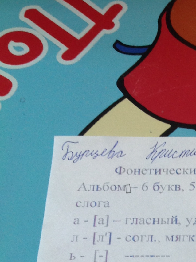 В слове «альбо́м»: слогов—2 (а-льбом), букв—6, звуков—5: