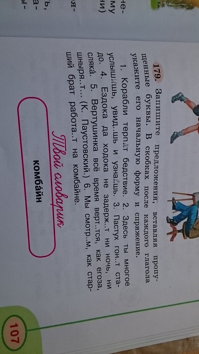 Терпят(терпеть),услышишь(услышать),увидишь(увидеть),узнаешь(узнать),гонят(гнать),задержить(задержать),вертится(вертеть),шныряются(шнырять),смотрим(смотреть),работает(работать).