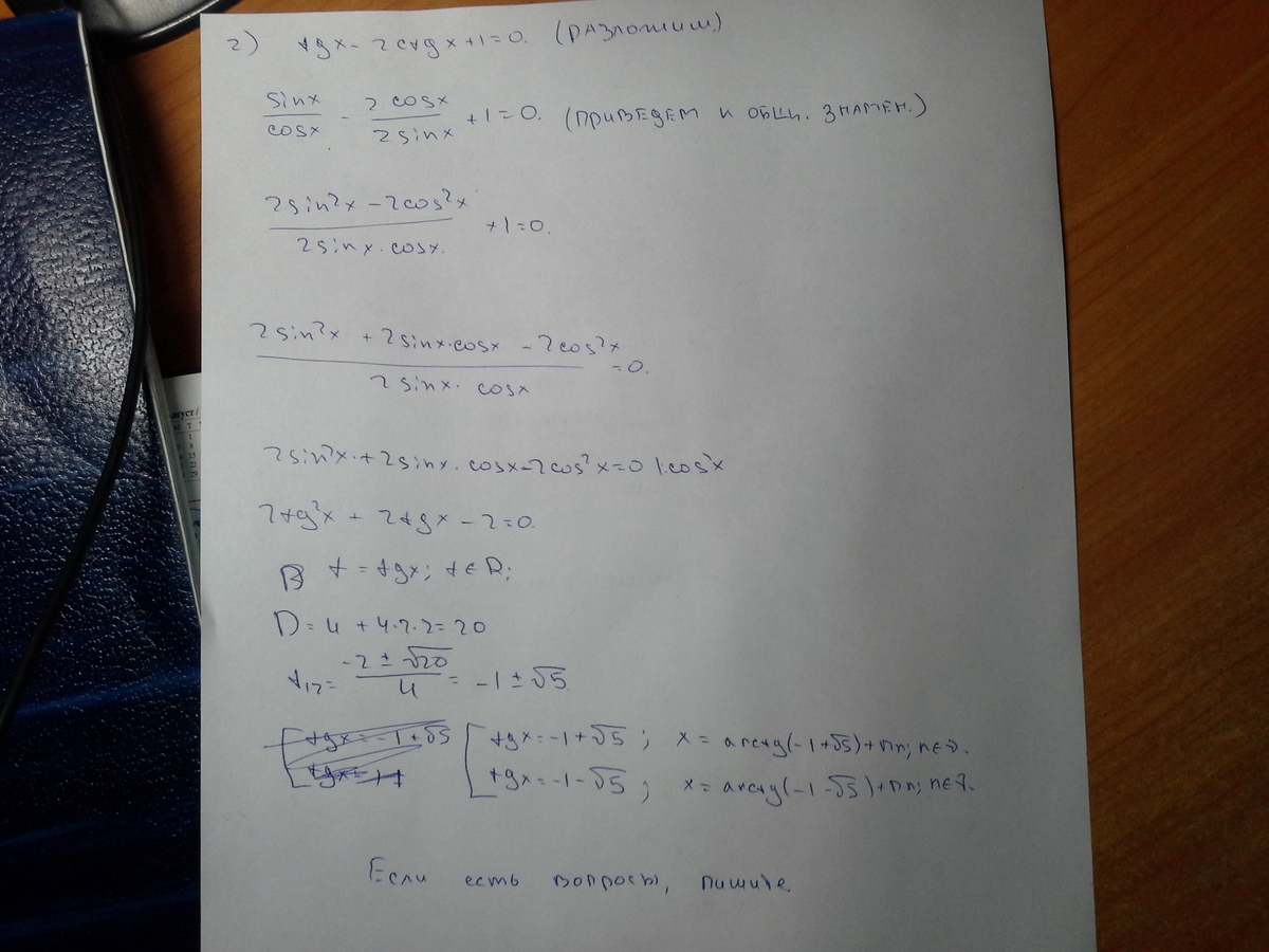 2) tgx - 2 ctgx + 1 = 0