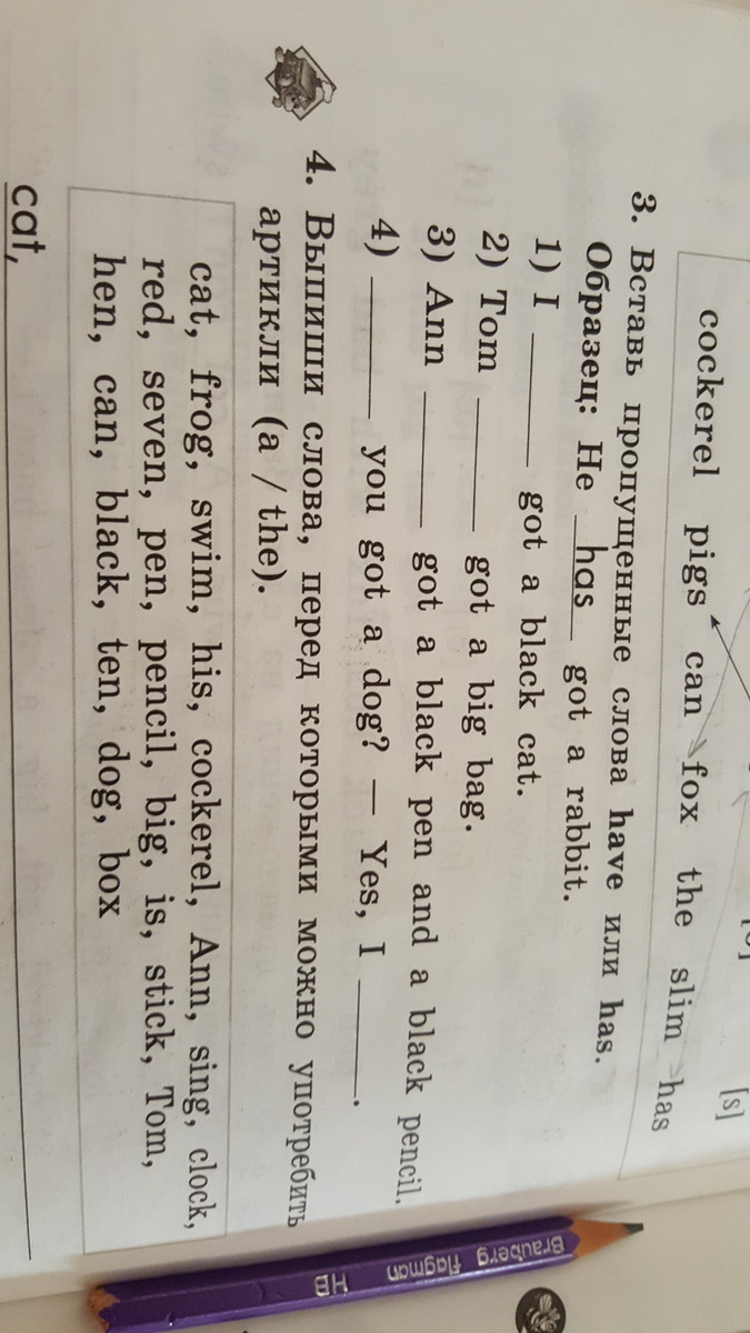 cat, frog, cockerel, Ann, sing, clock, red, seven, pensil, big, stick, Tom, hen, can, black, ten, dog, box.