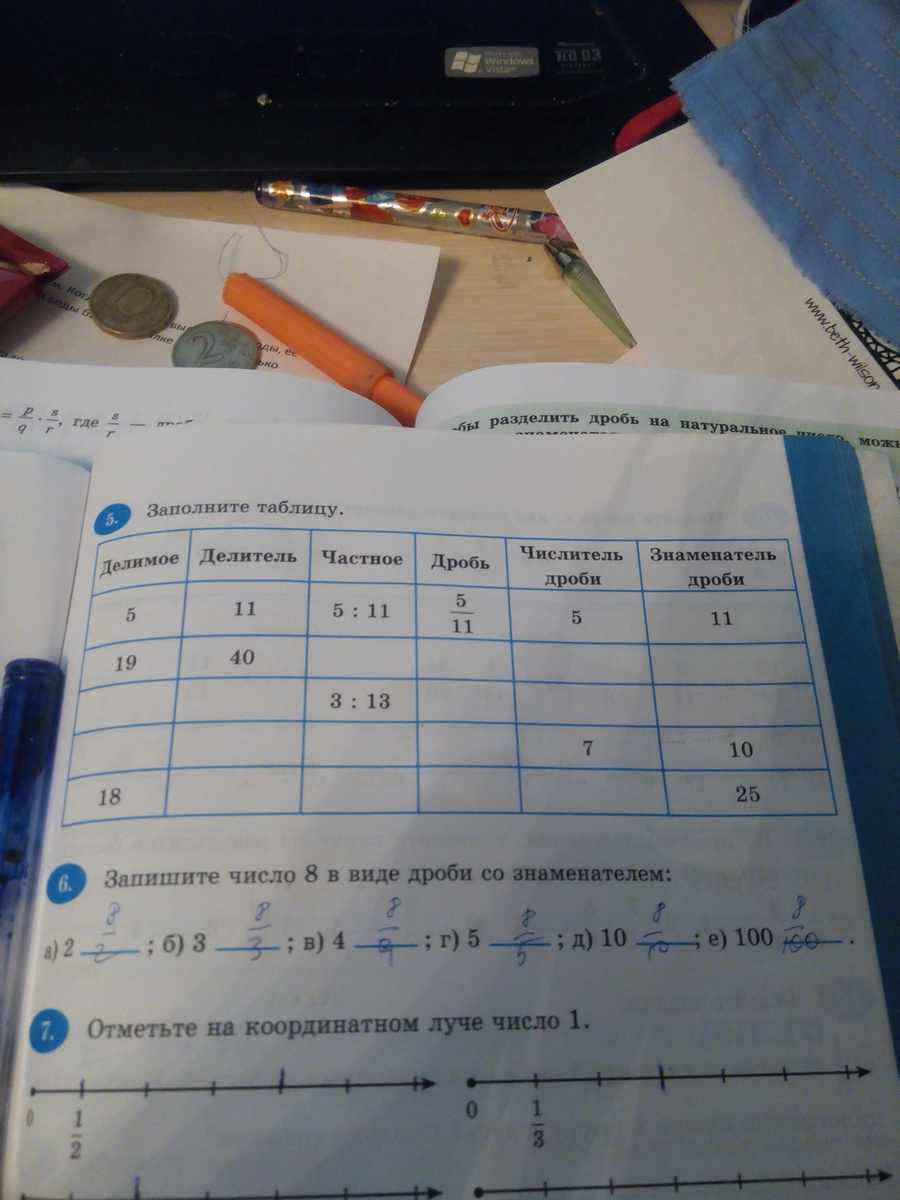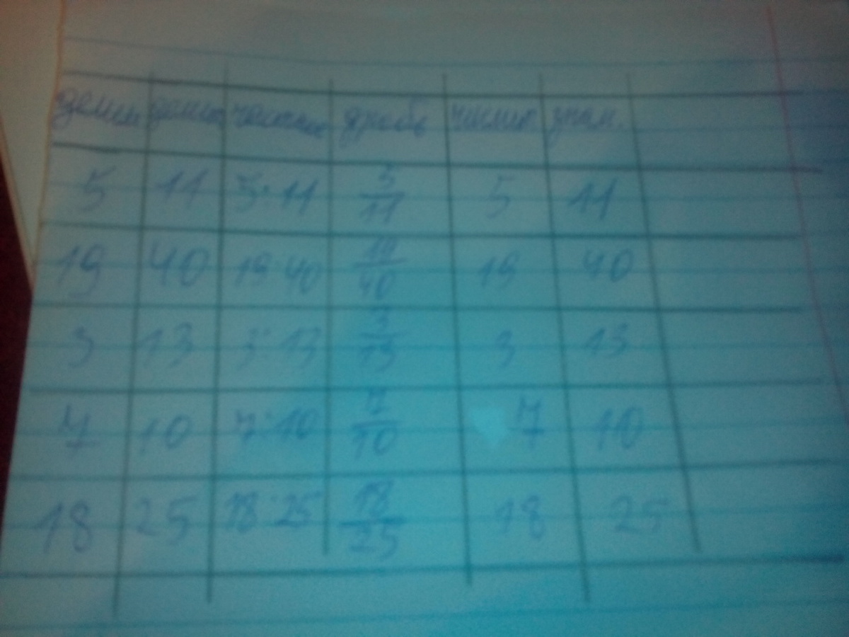 дроби: 5/11; 19/40; 3/13; 7/10; 18/25.