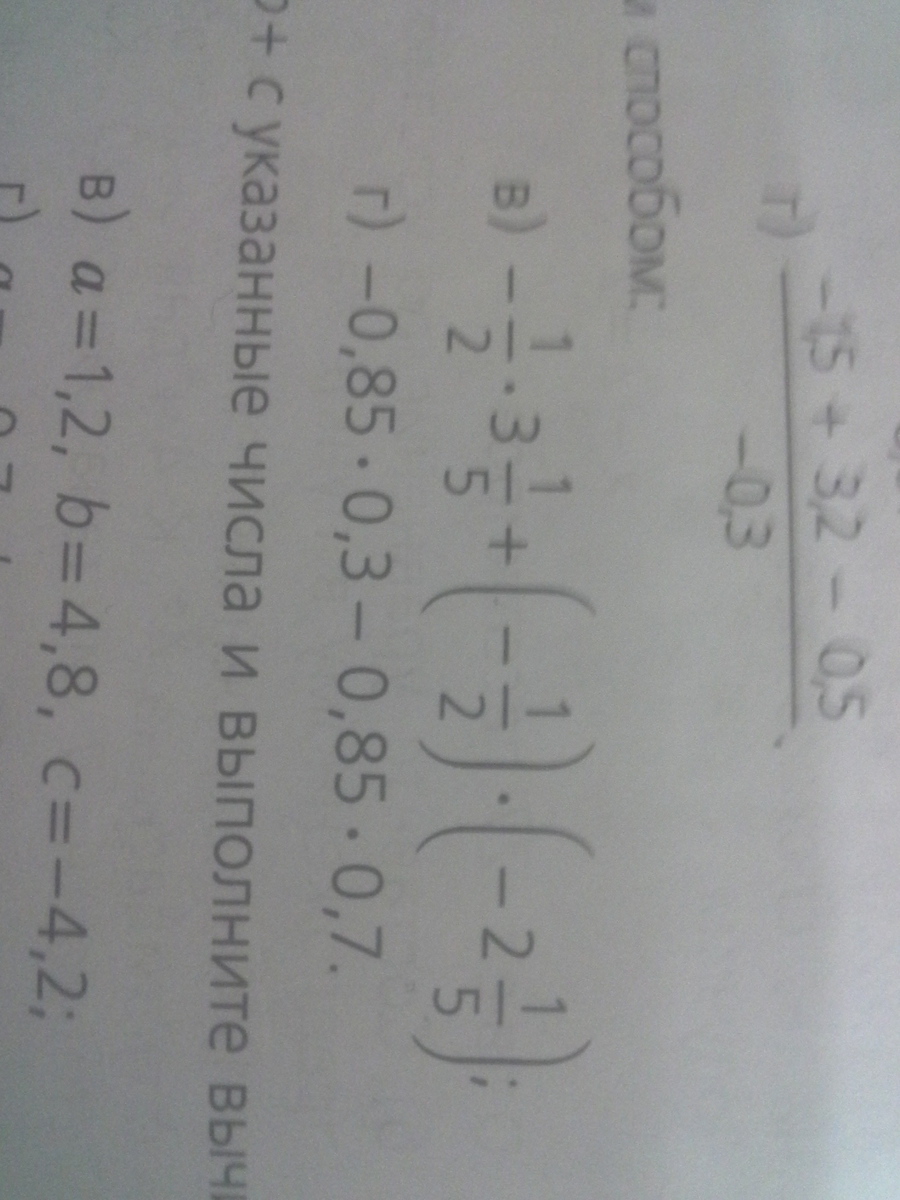 г) -0,85 * 0,3 - 0,85 * 0,7 = -0,85 (0,3 + 0,7) = -0,85