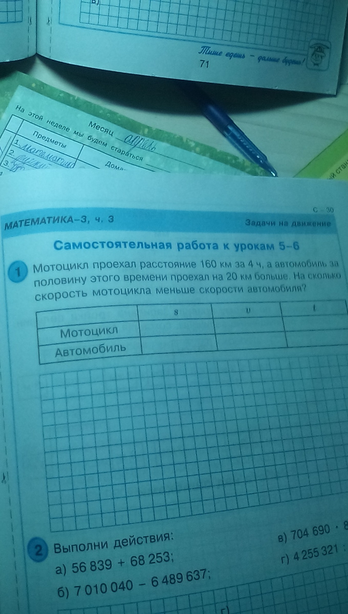 90-40=50(км/ч)-на столько скорость мотоцикла меньше скорости автомобиля
