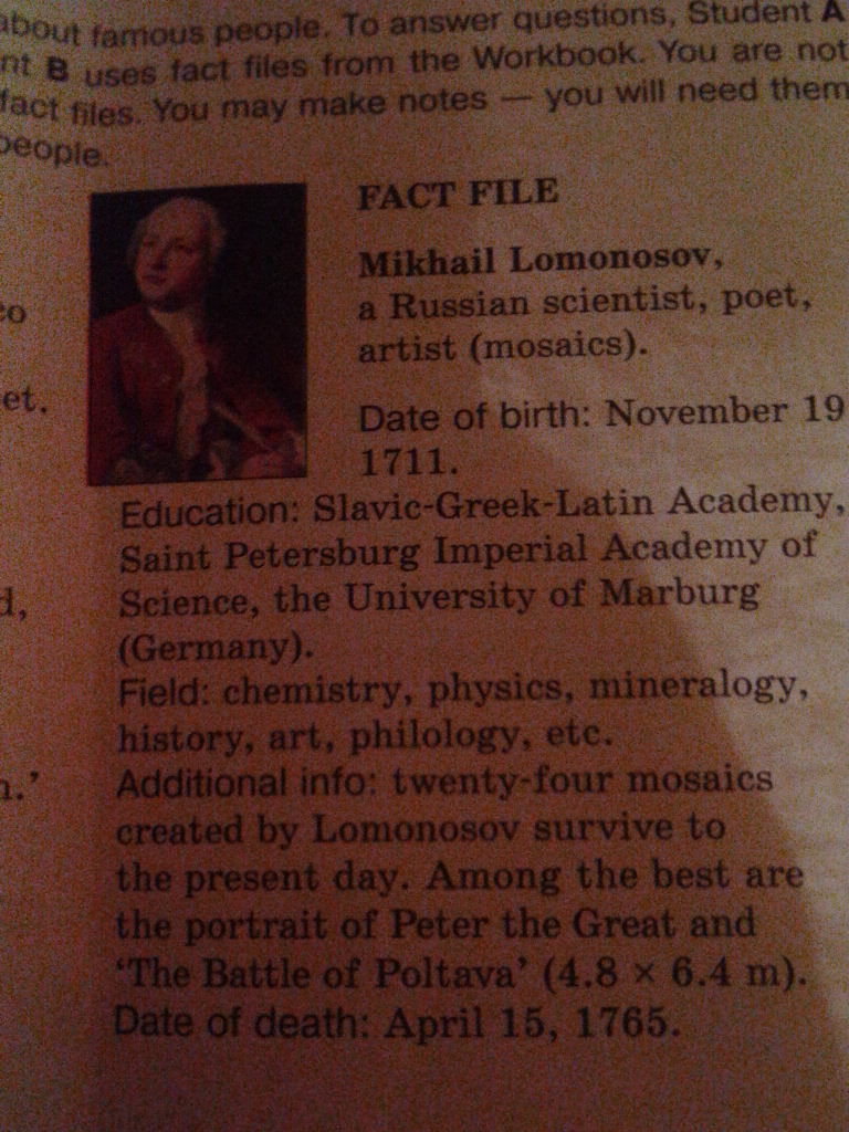 дополнительная информация:24 мозайки сделанные Ломоносовым сохранились до наших дней. Конечно лучшими портретами являются Петр Великий и "Битва на Полтаве"(4.8м на 6.4м)