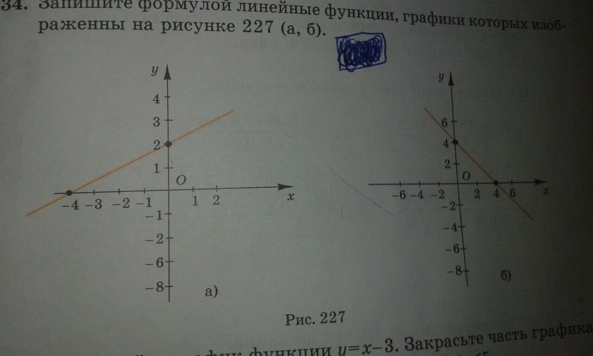 Запишите формулой, линейные функции графики которых изображены на рисунке 227 (а,б) ПОЖАЛУЙСТА!