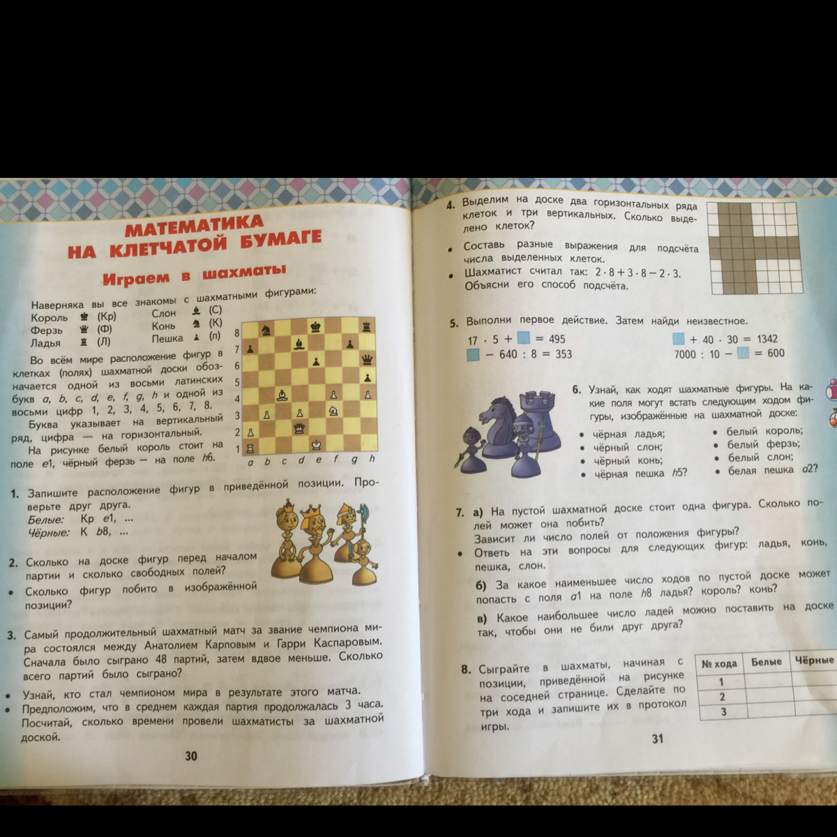 Ребята пожалуйста помогите заделать номер 8,в самом задании написано что на соседней страницы сами шахматы,так и есть сапо поле находится под красной надписью и на странице 30 а номер который надо заделать на 31(на всякий случай)))Поможете!!?