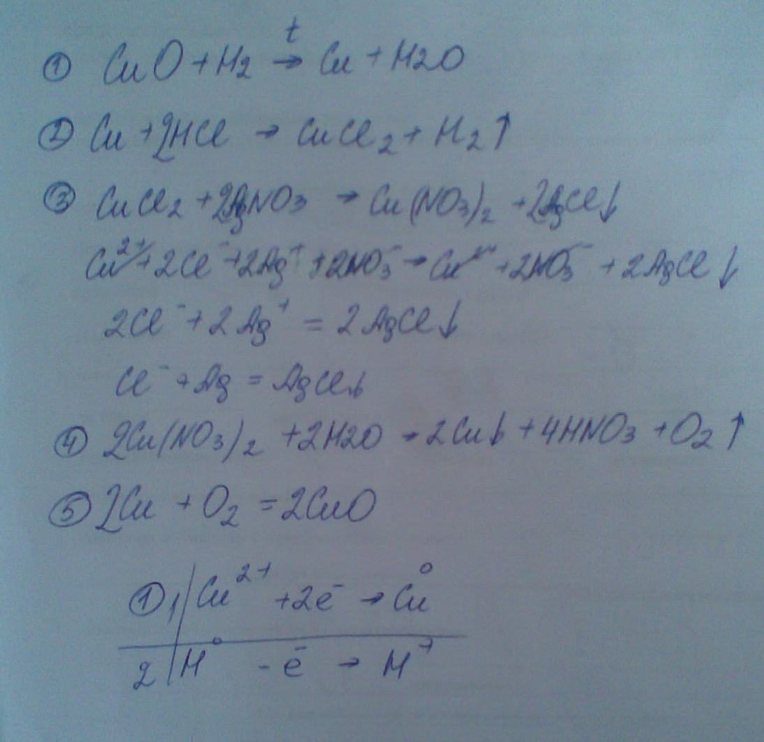 CuO->Cu->CuCl2->Cu(NO3)2->Cu->CuO