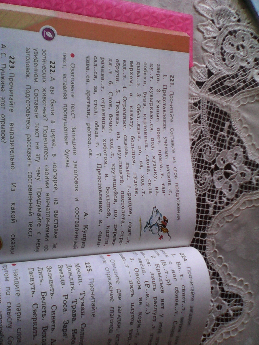 6) Слон ходит по крутящейся бочке, хобот переворачивает страницы книги и садиться за стол обедать.
