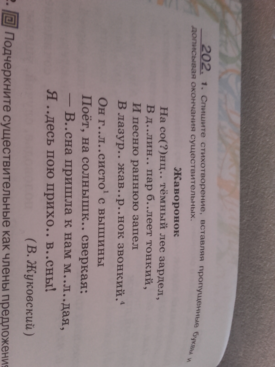 На солнце темный лес зардел,<br />В долине пар белеет тонкий,<br />И песню раннюю запел<br />В лазури жаворонок звонкий.<br />Он голосисто с вышины <br />Поет, на солнышке сверкая:<br />-Весна пришла к нам молодая,<br />Я здесь пою приход весны!<br />