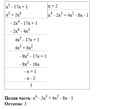поєтому остаток от деления многочлена x^5-17x+1 на x+2=x-(-2) равен