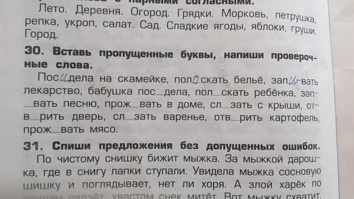 Посидела-сидя, полоскать-полощет, запивать-пить, поседела-сед, поласкать-ласка, запевать-петь,проживать-жить,слезать-лезть, отворить-затвор, слизать-лижет,отварить-варит, прожевать-жёванный.