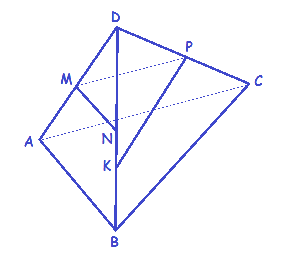 точно D не лежит в плоскости треугольника АВС, точки М,N иP - середины отрезков DА, DВ и DС соответственно, точка К лежит на отрезке ВN.выясните взаимное расположение прямых а) ND и АВ; б) PK и ВС; в) MN и АВ; г) MP и АС; д) KN и АС: е)MD и ВС