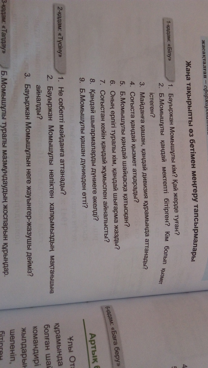 2.Какую школу закончил Бауыржан Момышов? Кем он работает