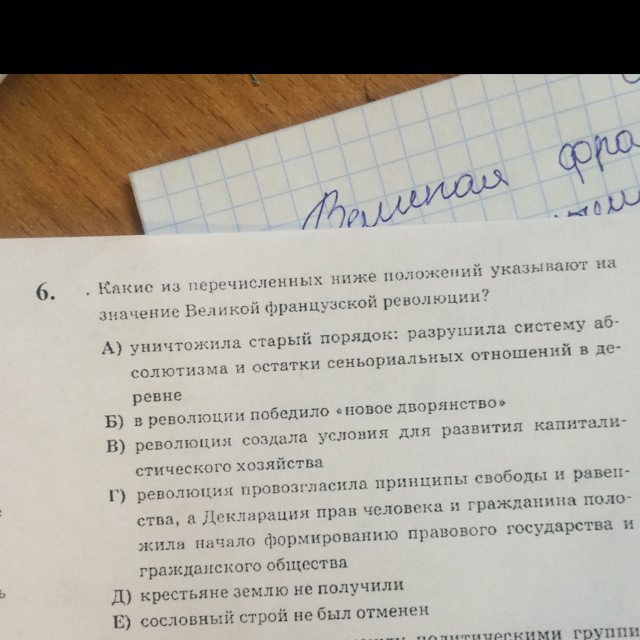 Какие из перечисленных ниже положений указывают на значение Великой французской революции?