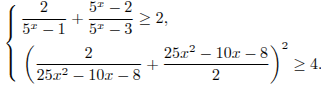 0<x<=log5(2) U log5(3)<x<0,8 U 0,8<x<=1.