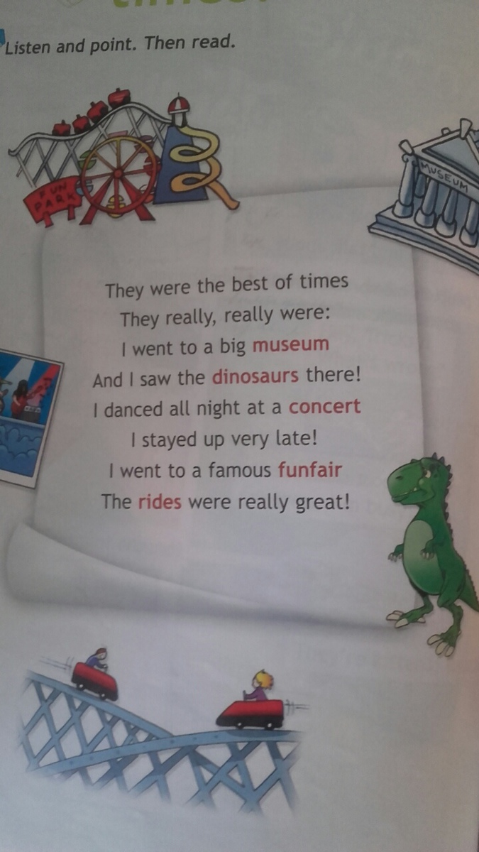 Это были лучшие временаони на самом деле, были на самом деле:я пошел в большой музейи я увидел там динозавры!я танцевала всю ночь на концертеЯ остался очень поздно!я пошел в известной веселой ярмаркеаттракционы были действительно здорово!