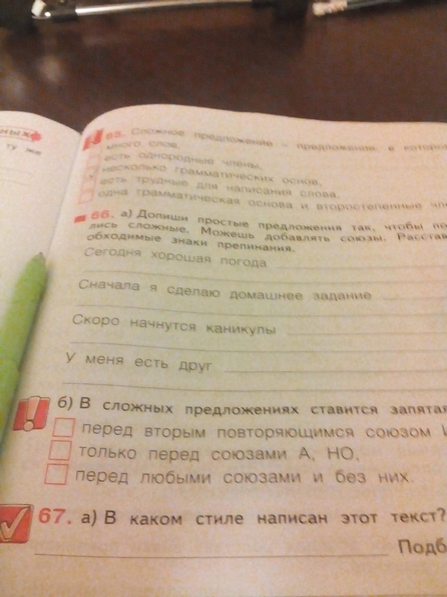 Запиши простые предложения так чтобы получились сложные. можешь добавлять союзы корче вот фото