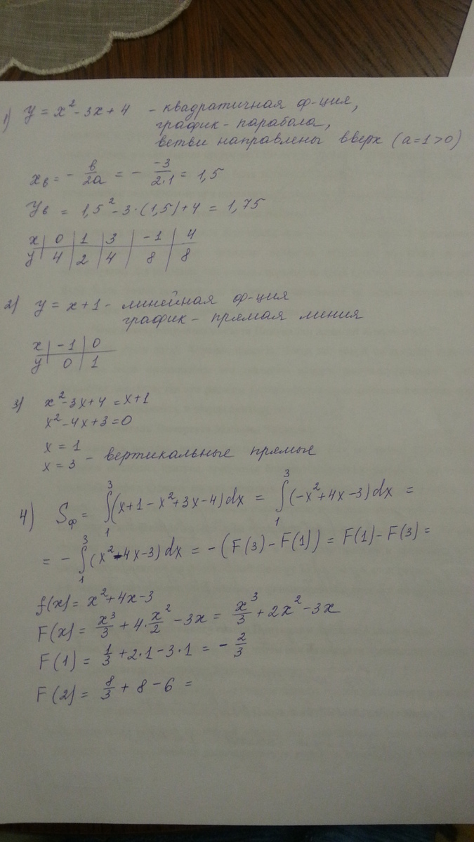 Прямая у=х+1 пересекает параболу в точках х=1 и х=3, так как