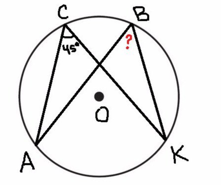 Вписанные углы, опирающиеся на одну и ту же дугу равны. Следовательно, ∠ABK=∠ACK=45°