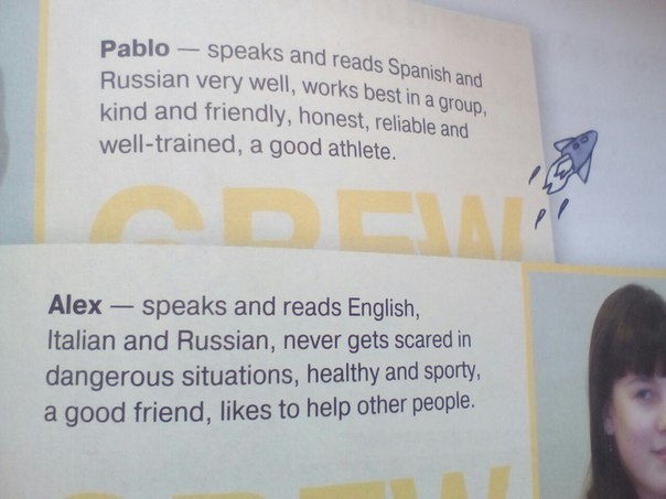 Алекс – говорит и читает по-английски, итальянский и русский, никогда не испугается в опасных ситуациях, здоровый и спортивный, хороший друг, любит помогать другим людям