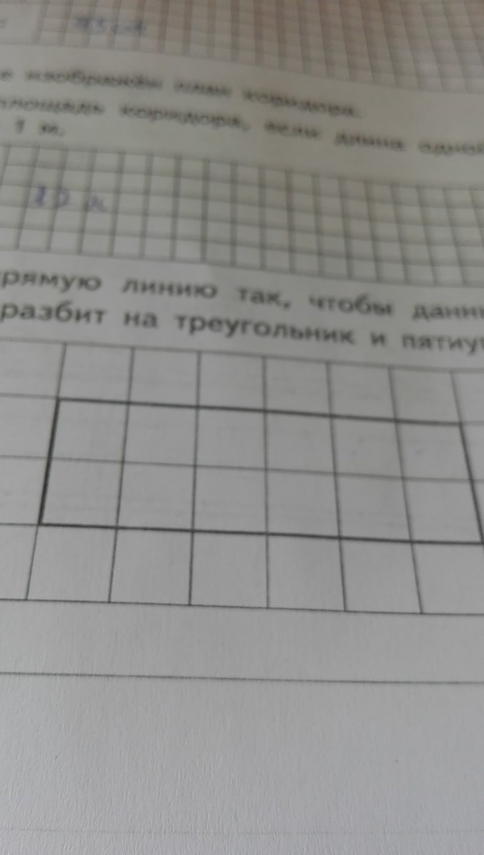 проведи прямую линию так чтобы данный прямоугольник оказался разбит на треугольник пятиугольник