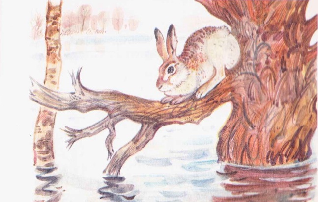 Главный герой картины художника А. Н. Комарова - заяц. Опишите его:какие у него голова,глаза,уши,шерсть?Где и как он сидит?Расскажите , как случилось,что заяц оказался на дереве.Ваш слушатель-первоклассник,младший братишка. Сочинение по картине А.Н.Комарова "Наводнение".