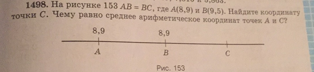 _ - п ‚ рисунке 153 ПАВ = где и Найдите координату ему радию среднее арифметическое координат точек А и 8,9 3,9 = С А В с „ Рис 153