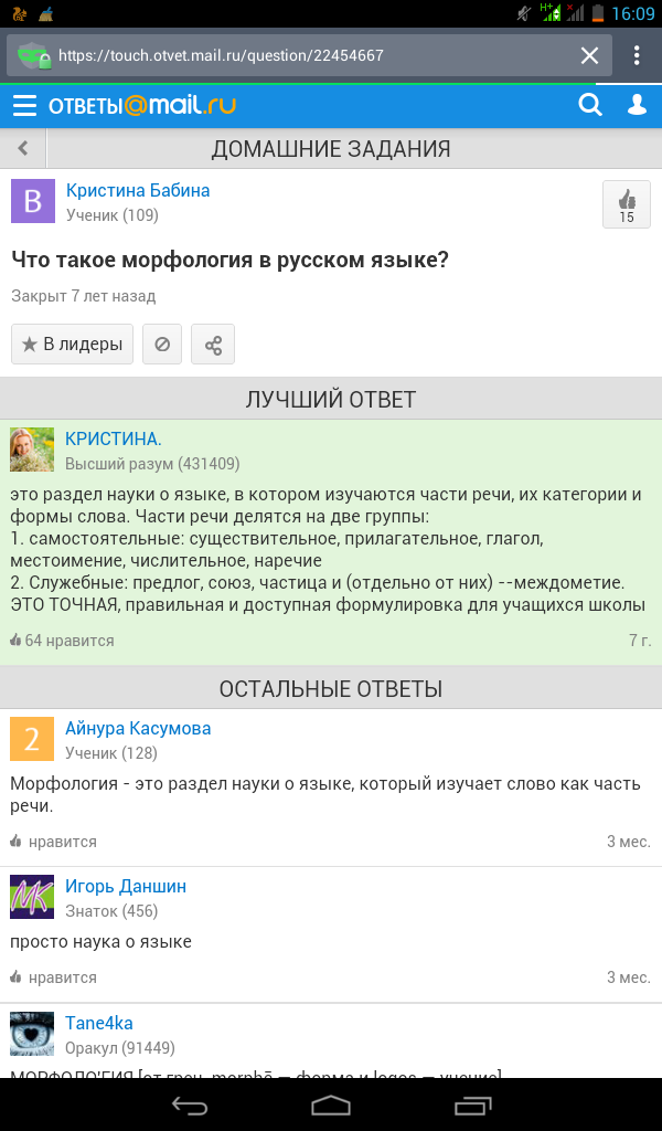 Морфоло́гия (от др.-греч. μορφή — «форма» и λόγος — «слово, учение») — раздел лингвистики, основным объектом которого являются слова естественных языков, их значимые части и морфологические признаки. В задачи морфологии, таким образом, входит определение слова как особого языкового объекта и описание его внутренней структуры.