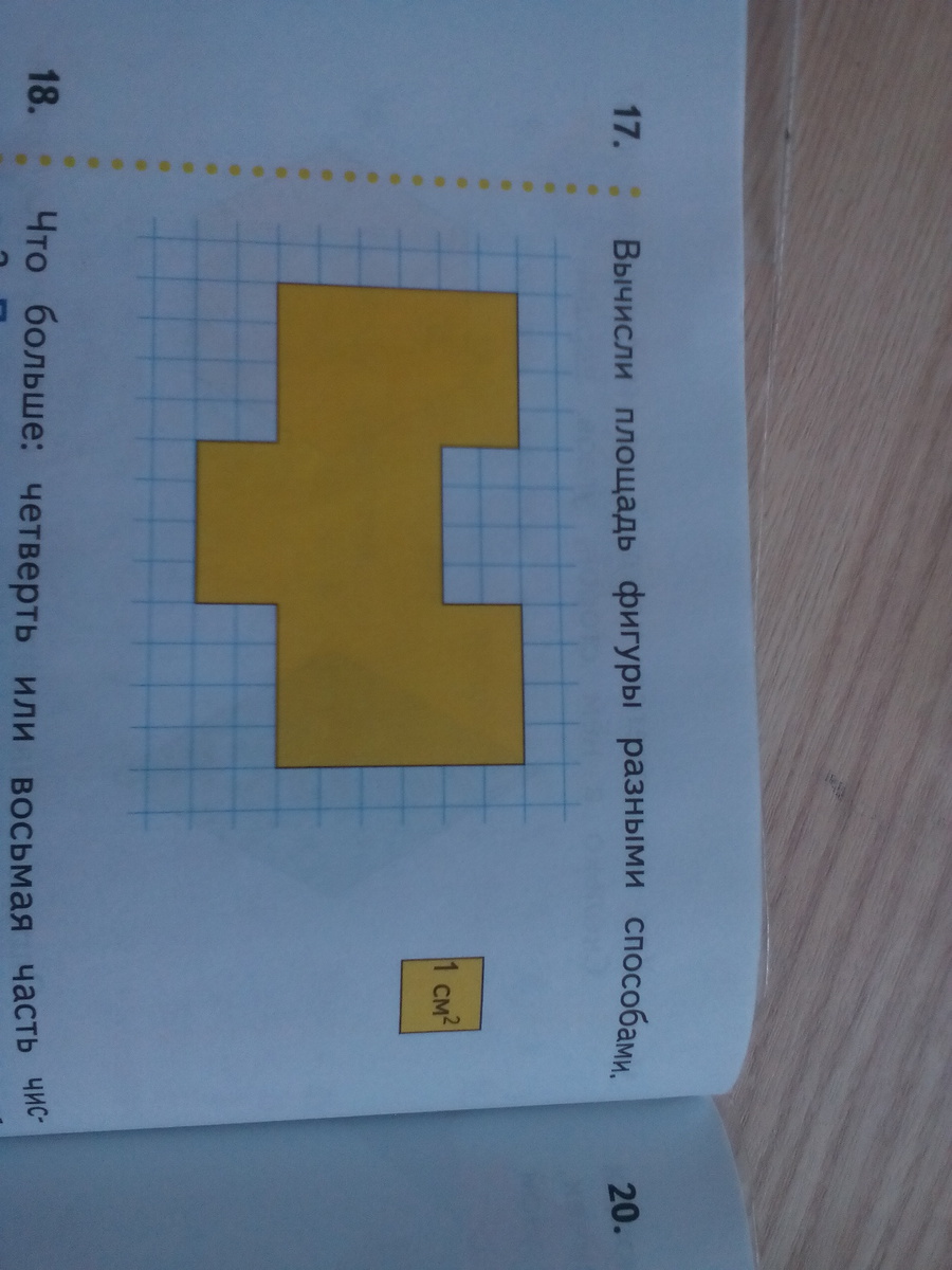 помогите пожалуйста. 2 класс. вычисли площадь фигуры разными способами. пожалуйста подробно