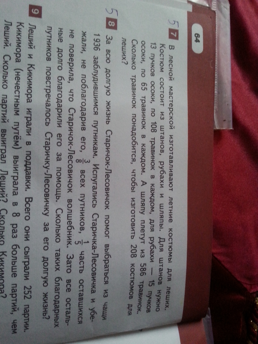 4)208x2965=616720(тр.)потребуется для того чтобы сшить 208 костюмов.
