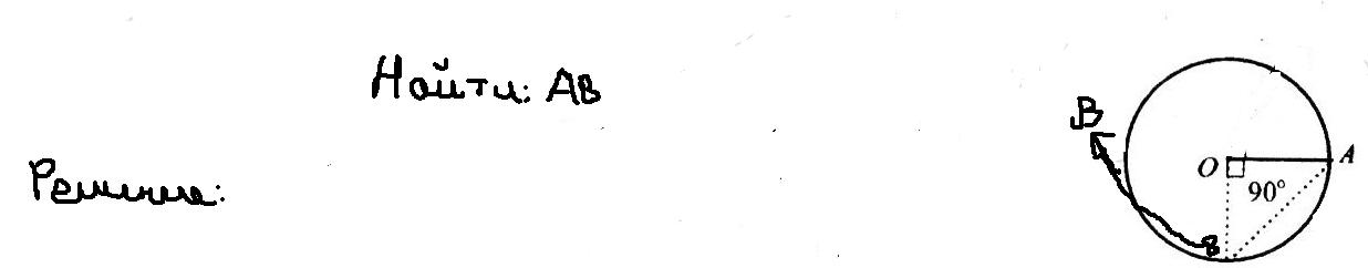 Условие: Радиус окружности с центром O равен 16. Найти хорду ab. Если aob(угол)=90 градусов