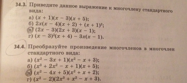 34.3 в) (2x-3)(2x+3)(x-1)= (4x² -9)(x -1)=4x^3 -4x² -9x +9