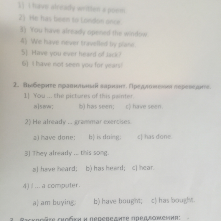 1)saw ,you saw the pictures of this painter.2) has done.3 ) have heard..4) have bought