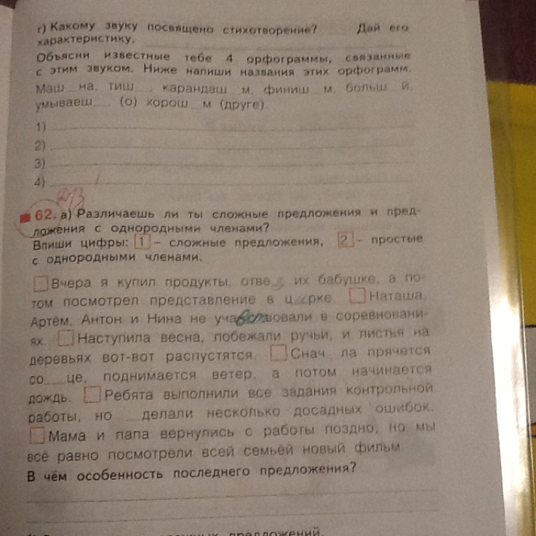 Сделайте 62 упражнение. Напишите какое сложное предложение а какое простое!!!! Остальное делать не надо.