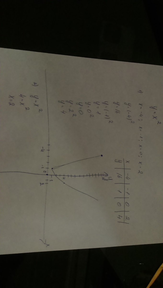 постройте график функций y=x^2 a)найдите значения y , если x= - 4 , - 1 , 0,2 б)значение x , если y=4