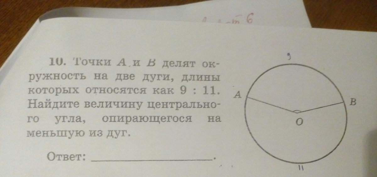 18X9=162 градуса меньшая дуга АВ центральный угол измеряется этой дугой те угол =162