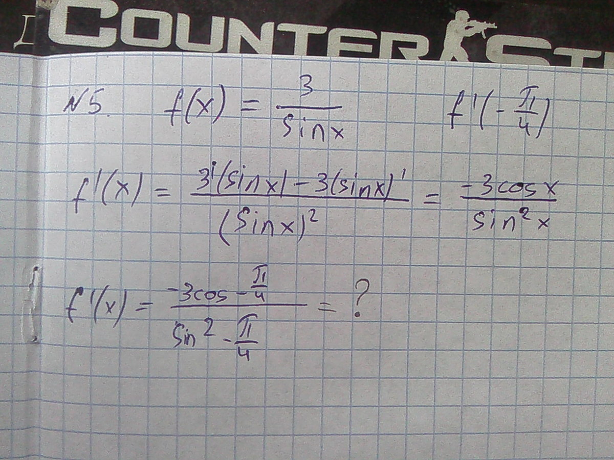 f'(-pi/4)=-3*(1/sqrt(2))/(1/2)=-3sqrt(2)