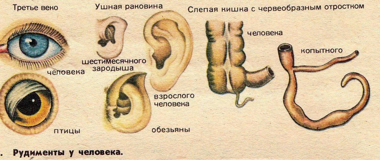 Рудименты - органы, которые были у далеких предков организма, но перестали у организма функционировать. Они закладываются в эмбриогенезе у организма, но не развиваются и не выполняют свои первоначальные функции.