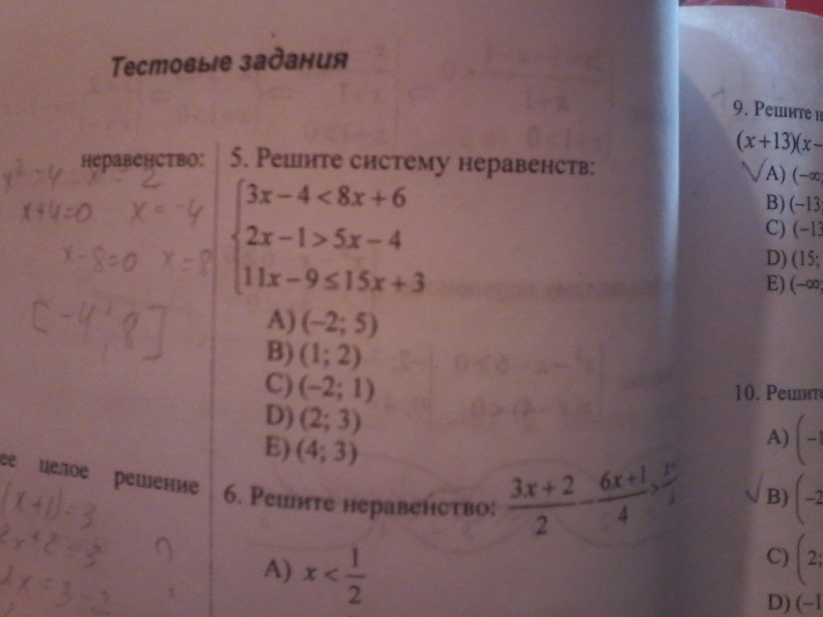 3х-4<8x+6 -10<5x x>-2 1) ------------(-2)----------------