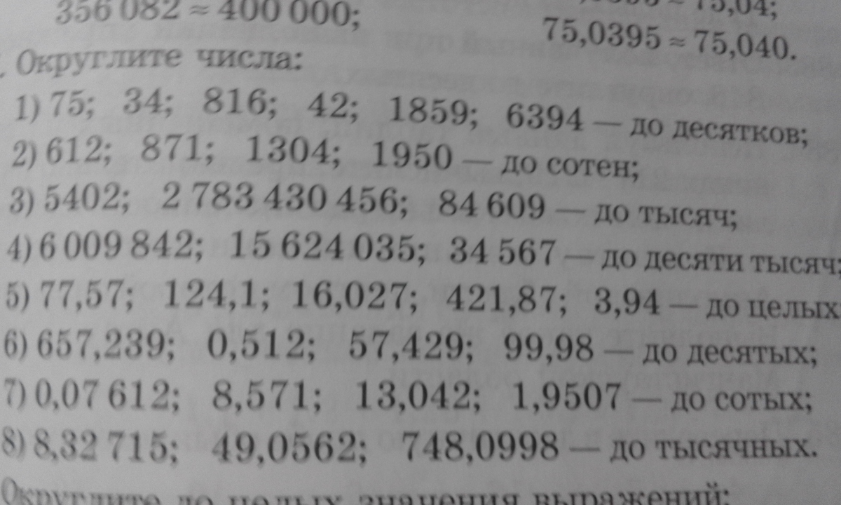 1. 75=80 или 70, 34=30, 816=800, 42=40,1859=1860, 6394=1390;