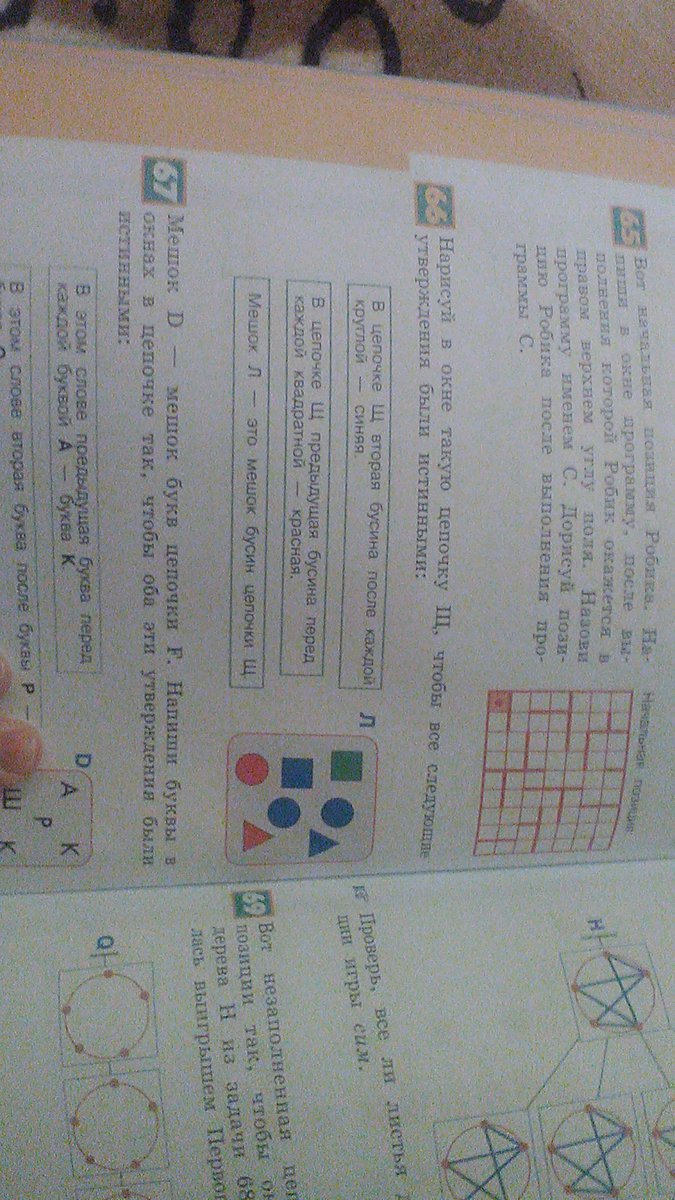 1 красный круг 2 зеленый квадрат 3 синий круг 4 синий треугольник 5 синий круг 6 красный треугольник 7 синий квадрат.