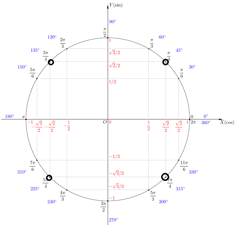 !!!Примечание. И если мы к углам π или 2π прибавляем (или отнимаем) какой-то угол, то тригонометрическая функция не меняется (косинус остаётся косинусом, а синус-синусом), а если мы прибавляем (или отнимаем) какой-то угол от углов π/2 или 3π/2, то косинус меняется на синус, к примеру:
