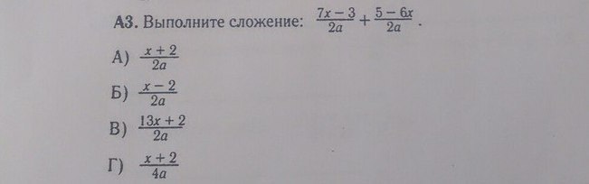 (7х-3)/2а + (5-6х)/2а= (7х-3+5-6х)/2а= (х+2)/2а