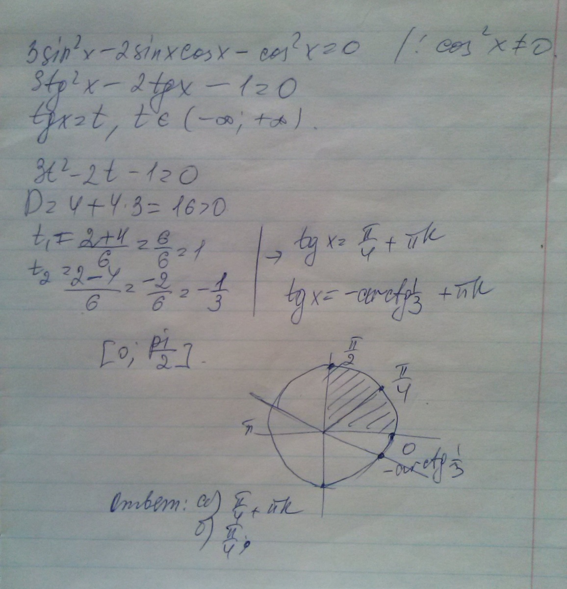 3sin^2 x - 2sin x × cos x - cos^2 x = 0 .
