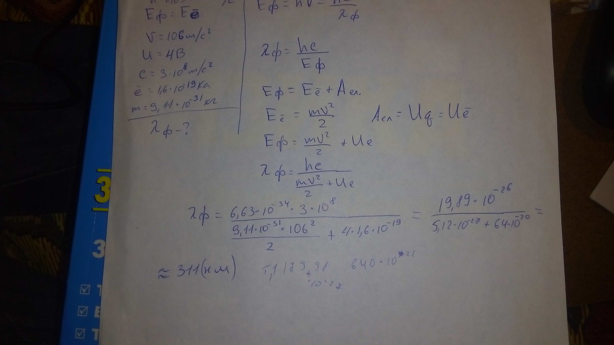Энергия фотона равна кинетической энергии электрона, имевшего начальную скорость 106 м/с и ускоренного разностью потенциалов 4 В. Найти длину волны фотона.