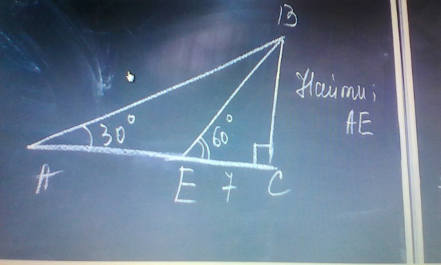 т.к EBC=30, САВ=30, АВС - прямоуг, то АВЕ=30, следовательно АЕВ - равнобедренный