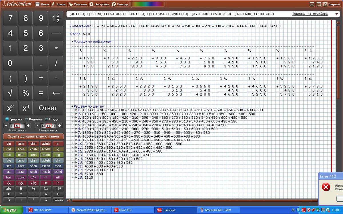 30+60+90+120+150+180+210+240+270+300+330+360+390+420+450+480+510+540+580+600=
