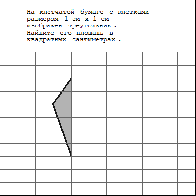 На клетчатой бумаге с клетками размером 1см x 1 см изображен треугольник (см. рис. ) Найдите его площадь в кв. см.
