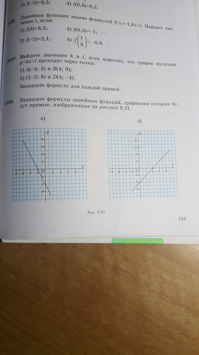 запишите формулы линейных функций,графиками которых будут прямые , изображенные на рисунке 8.21.